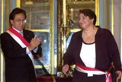 Solari's press secretary told the AP the congressman would not comment. "We are waiting to hear what the prime minister says when she returns," Jose Antonio Varela said. Seen by many as a welcome bulwark of decisive leadership in Toledo's fragile presidency, Merino has been the most popular member of his government since coming on board in June. Recent polls show her with approval ratings of 64 percent. Merino took on a bigger role in running government than her predecessors and is generally credited with helping Toledo's popularity rise from 11 percent to 18 percent. The news magazine Caretas speculated Thursday that Merino's high approval ratings may have sparked envy among Solari, governing party members upset with her status as a political independent — and even Toledo. Merino addressed this during her visit to Harvard, El Comercio reported Friday. When a professor asked if she was considering a run for the presidency, Merino laughed and said: "I think that's why I'm having problems, because many people think that I want to run." The scandal dominated news coverage this week. Critics slammed Toledo for allowing members of his party to take part in the mudslinging, calling it another example of weak leadership. El Comercio and opposition politicians urged Toledo to police his party — a loose coalition that helped put him in office in July 2001 but is expected to disintegrate upon his exit in 2006. "The time has come for Toledo to get rid of the bad and dishonest people surrounding him who only want power without concern for the country's development," opposition Congressman Hildebrando Tapia said. Speaking at a conference in Washington about the role of women in strengthening democracy, Merino said one of her guiding principles has been "to treat your rivals with respect." "Never get involved in personal attacks," she said.
