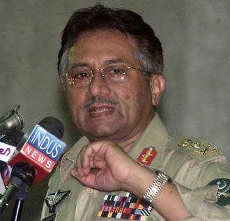 Musharraf is seen speaking in Ghazi Bartha, about 80 km from Islamabad, in this August 2003 file photo. [Reuters]