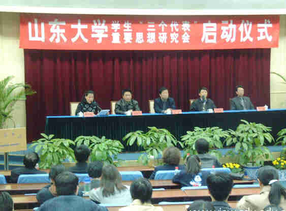 Shandong University launches a students' seminar on studying the important "Three Represents" thought on April 9, 2003. [xinhua]