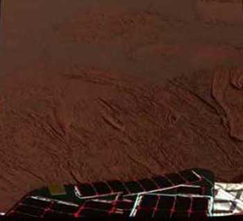 rover successfully landed at Meridiani Planum on Mars, shows the view from