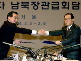 "South and North agreed to cooperate for a fruitful second round of six-party talks to resolve the nuclear issue peacefully," said a joint statement issued after three days of inter-Korean ministerial talks in Seoul. The 13th set of cabinet-level contacts since the capitalist South and communist North began their cautious reconciliation process four years ago began just hours after the North announced a long-awaited date for the six-way talks. But the upbeat mood soon dissipated as the significance of the revelations from Pakistan sank in. "The North is in a difficult situation, in a jam," said Kim Sung-han, a DPRK-US relations expert at the Institute of Foreign Affairs and National Security (IFANS). He said the dramatic confessions by Abdul Qadeer Khan, the father of Pakistan's atomic bomb, had undercut Pyongyang's efforts to deny the existence of a clandestine uranium enrichment programme that was the catalyst for the nuclear dispute. DPRK has yet to issue a reaction to Khan's statements. "The North definitely feels a difference in temperature now," said Kim after South Korea rebuffed the North delegates' efforts to drive a wedge between Seoul and Washington with well-rehearsed calls for "ethnic cooperation". NORTH REBUFFED The North's chief delegate, Kim Ryong-song, sought to blame the United States for the relatively slow pace of inter-Korean economic projects and accused Seoul of colluding with Washington. "To get drawn into the cooperation against the North is to drive the nation to mutual destruction," Kim said on Wednesday. South Korean Unification Minister Jeong Se-hyun, Kim's counterpart, chided him for creating unnecessary trouble. "If our relations deteriorate, it will only be damaging to the North," Jeong said. South Korea told the North its security concerns and need for economic assistance would be dealt with once the nuclear problem was resolved, said Shin Un-sang, the South Korean spokesman. The two sides agreed to try to hold new military talks, although there was no guarantee the North would follow through. South Korea's version of the statement said the two would hold military talks between generals as soon as possible with the intention of convening defence ministers' talks to follow up a one-off meeting in September 2000. But the North, where the secretive military is the paramount authority, issued a statement saying only that both sides would propose military talks to their military authorities. South Korea's Shin said the general-level talks would first take up preventing military clashes in the Yellow Sea, where a series of naval clashes have killed dozens of sailors. "But the North is usually lukewarm toward any exchanges between the militaries," Shin said. The North's 1.1 million-strong military, the world's fifth largest, has nearly twice the number of active forces of South Korea. The two Koreas remain in a technical state of war because their 1950-53 conflict ended in an armed truce that has not been replaced by a peace treaty. DPRK, which has suffered dire food shortages over the past decade and a famine, requested 200,000 tonnes of fertiliser at the talks. ROK promised to consider the request, Shin said. The ministers also agreed to hold a new round of reunions of families divided since the Korean War at the end of March and set May 4-7 as the dates for the next cabinet-level talks. Both the reunions and the ministerial talks will be held in the North. |