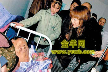 His talent in singing and dancing made him a popular performer whenever there were festivities in the village. Some of his fellow villagers even dubbed him the "party prodigy" because he was such an inspiration at those times. Ding was also a good story-teller. When night fell, children in the village would gather under the big willow tree in Ding's courtyard, to listen to Ding's wonderful renditions of stories from "Journey to the West" and "The Three Kingdoms." During the Spring Festival in 1983, Ding met a member of a singing troupe who promised to introduce him to a young woman living in Linjiang city. The matchmaker told Ding the woman was very nice but had a deformed face. "What's wrong with being ugly?" Ding replied humorously. "As long as she is a woman, filial to my parents and can bear me children, it'll be okay!" Even though the matchmaker had forewarned him, Ding was still shocked when he met Sun for the first time a few weeks later. Sun had been born with the left side of her face severely deformed. People avoided her and gave her queer looks from the time she was a child. Not surprisingly, Sun had never gone to school and seldom stepped out of her home to meet strangers. Ding was greatly moved by Sun's story. "We have both been unlucky in life, so probably we'll be a perfect match," said Ding, who accepted Sun in the end and agreed to marry her. Two days later, the two prepared to set out for Ding's home, but the bus driver was not willing to take them because of Sun's looks. So they had to walk the 70 kilometres to Ding's home in the snow. But the wedding was really great. All the villagers came to the ceremony and congratulated the newlyweds. Their marriage turned out to be more blissful than most people had expected. Ding was much happier than he used to be and worked in the fields from dawn to dusk. Sun stayed at home taking care of her elderly parents-in-law and doing the housework. But the lump on Sun's face continued to grow bigger and bigger, and Ding helped her comb her hair and wash her face and feet when he returned home every night. One day in May of 1991, Ding went home as usual but found that Sun had made a grand dinner for him. "Guess what, I have great news for you," Sun said. Ding noticed his wife had her hand on her stomach and realized at once. "We're having a baby, right?" Ding was so happy that his eyes filled with tears. On February 28, 1992, Sun gave birth to a baby girl. The couple called her "Xiao Yanzi," which means little swallow in Chinese. Conditions worsened The new life brought great happiness to the family, but Sun's health began to worsen after the birth of their daughter. Since they were too poor to afford proper treatment in the big city, Sun could only get simple medications from the small local clinic. By the summer of 1997, Sun had become totally paralyzed and was bedridden. In addition to taking care of his paralyzed wife, Ding had to work hard to make enough money to pay her medical bills - about 100 yuan (US$12) every month. For years, the family mostly lived on the corn and beans Ding planted, with an annual income of 7,000 to 8,000 yuan (US$845 to 966). During the slack season, Ding often went up into Changbai Mountains to collect medicinal herbs. Sometimes he was able to earn as much as 500 yuan (US$60) for a trip. As their daughter grew up and began to go to school, Ding was faced with further financial pressure. Misfortunes never come singly. Unwilling to be a burden to the family, Sun had tried to poison herself in May, 2003. When Ding returned home and found his dying wife, he carried her on his back and rushed to the clinic. Fortunately, they managed to revive her. When she finally came around, Ding held her in his arms and tried to comfort her: "Don't worry. Everything will be all right. Your being alive is our greatest joy." In the following months, Sun tried to commit suicide two more times the same year, but Ding intervened both times. "I must have done something good in my past life to deserve such a wonderful husband," said Sun when he saved her in October. Ding also won praise from his fellow villagers for his devoted love for his wife and family. His neighbour Duan Lianwen still remembers a scene from several years ago. One day he saw Ding and his daughter walking by. To cheer up the little girl, Duan gave them two ice lollies. As they were leaving, Duan heard Ding say to Little Swallow, "Take my lolly home and give it to mum." Even today, that touching scene is still fresh in Duan's mind. New hope After struggling in the dark for so many years, the family finally saw a light of hope. Ding and Sun's story was reported in the Changchun City Evening News in early February and soon drew the attention of people throughout the country. Ding received calls from hundreds of people from Hong Kong, Shanghai, Beijing and other cities. Many of the callers offered to help pay for Sun's medical treatment and help Ding's daughter complete her schooling. According to Li Jiali, a journalist from City Evening News who has been following Ding's story for over a month, the newspaper has so far received donations of over 49,000 yuan (US$5,917) for the family from all over the country. With the help of the local government, Sun, accompanied by Ding and their daughter, was sent to Zhongshan Hospital in Changchun on February 12 this year. After a physical exam, Sun started taking treatment for pulmonary tuberculosis. Ding is pleased to see that his wife is looking much better now after a month in hospital. "Her mind is clearer, and even more surprising, she can stand up by herself and walk a few steps with the help of others," Ding told China Daily. Their 12-year-old daughter has looked depressed ever since she arrived in Changchun, although she had never been to a big city before. She spends most of her time sitting beside her mother's bed and reading books. Luo Qi, the neurosurgeon in charge of Sun's case, said Sun can have surgery to rem