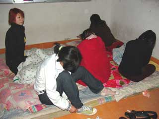 Police and market law enforcers jointly smashed a pyramid selling ring in east China's Anhui Province on March 24, 2004. In a room about 15 square meters, more than 10 were squeezed to live in. The operation helped rescue 100 participants from falling further down into the money trap. [newsphoto]