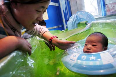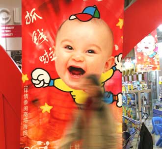 Right after he was born, dozens of sales ladies from various gift companies miraculously appeared at the hospital to congratulate me and recommended their good quality, red painted eggs (usually used to celebrate the birth of a child). I paid 175 yuan (US$21) for 250 such eggs to hand out among our relatives and colleagues. A week later I went home and was immediately bombarded by hundreds of phone calls ranging from miscellaneous milk powders to numerous insurance policies. I bought one sponsored by Shanghai Child Welfare Foundation and refused all the others. That was not the end, however. Since then our mailbox has been stuffed with tons of ads and journals focusing on infant commodities and training, with my son抯 name and address on every one of them. I felt very happy to see my boy cared for by so many people and greatly appreciated the journals as they taught me in detail how to be a qualified mother. For example, I learned to hire a professional baby-sitter at 2,000 yuan (US$240) and to rear the boy in a most scientific way for the first month. I learned to make a 2,000 yuan (US$241.6) foetal hair brush, as well as 450 yuan (US$54) hand-and-foot prints in commemoration of the significant birth of my baby. And I learned to buy capsules for the development of his cranial nerves at 52-104 yuan (US$6-12) a month. I could have attended certain infant training programmes with my son, but I did not have the strength. Then I found my son was not so bright as those trained infants. Three months later, my baby was allowed to go out for sunlight and fresh air for two hours a day. Every time I took him out for a walk, sales people would spring up as if from nowhere, praised the little boy for his cuteness and then advised his going to a training centre for a second language. But how could he pick up a second language while he was unable to speak the first language? "You will regret not signing up for our programme," they said. I did regret it, as quite a few infants in our neighborhood registered later at 5,000 yuan (US$602) and my parents accused me of irresponsibility. To make up for that, I bought a series of "My First Book" for him to tear up. (It is said that we should let them "read" such books from their birth) and began to take him to swim once a week in a pool for about 15 minutes at 58 yuan (US$7) per swim. And I had to hire a taxi to get there and come back.
