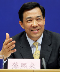 Bo Xilai speaks at a news conference in Beijing May 30, 2005. [newsphoto]