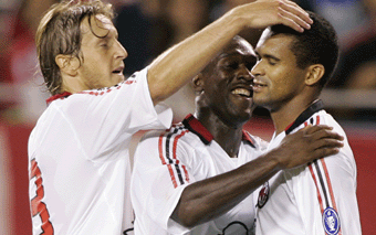 After a scoreless first half, Chelsea took a 1-0 lead in the 64th. Reserve forward Didier Drogba ran about 25 yards (meters), through two defenders, and beat AC Milan 'keeper Valerio Fiori with a left-footed shot. AC Milan's Andrea Pirlo knocked in a rebound off Christian Vieri's free kick in the 71st, but referee Brian Hall waved off the goal on an offsides call. With the draw, AC Milan won the World Series of Football tournament by goal differential against the two Major League Soccer teams in the tournament, the Chicago Fire and D.C. United.