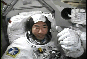 Astronaut Soichi Noguchi of Japan gives the thumbs-up sign as he prepares for his second spacewalk in the airlock of Discovery August 1, 2005.[Reuters] Steve Robinson and Japan's Soichi Noguchi drifted out of Discovery for a 6 1/2-hour spacewalk to remove the bad gyroscope from the station, which is linked to the shuttle 220 miles (352 km) above Earth. "Ah, out of quarantine," Robinson joked as he emerged from the spacecraft. "I can see you out the overhead window," shuttle commander Eileen Collins told the astronauts. "You're looking good." The spacewalkers went to work to take a failed gyroscope out of its berth on the space station and replace with a new one brought by Discovery. Gyroscopes keep the 200-ton space station correctly positioned. It has four of them but only two were working before Discovery's arrival. Robinson and Noguchi repaired the other malfunctioning gyroscope in their first spacewalk on Saturday. The $945 billion station can maintain position with just two working gyroscopes but if only one is functioning, the station crew would have to fire rocket thrusters, which burn precious fuel, to keep it steady, according to Reuters. Discovery is making the first shuttle flight since the Columbia disaster on February 1, 2003, and is the first shuttle to link up with the space station since November 2002. The spacewalking astronauts were scheduled to venture out once more on Wednesday to install a storage platform outside the station. NASA said on Sunday they might be asked to perform an unprecedented repair to the shuttle's heat shield during that spacewalk or it may add a fourth spacewalk on Friday for the task. Video inspections of Discovery after it launched last week found that two strips of material known as "gap fillers" between heat-resistant tiles on the shuttle's belly are protruding about an inch. NASA managers fear the protrusions could change aerodynamics and increase heat on the shuttle by as much as 25 percent when it re-enters Earth's atmosphere for landing scheduled on August 8. Heat shield damage was responsible for the loss of shuttle Columbia and its seven astronauts on February 1, 2003. The gap filler problem has cropped up on previous missions and the shuttles landed without problems but deputy shuttle program manager Wayne Hale said NASA engineers were assessing the risk of trying it again versus performing a repair that would involve trimming or removing the loose material. "I think the jury is out at this point on whether we'll do anything," Hale said. But, he said, "The Columbia accident made us realize that we had been playing Russian roulette with the shuttle crews." The Columbia disaster was caused by a piece of foam insulation that broke off the ship's fuel tank during launch and smashed into the ship's wing. After the accident, NASA adopted new procedures, spent $1 billion on safety upgrades and built equipment to inspect the shuttle while it is in orbit. Videos showed pieces of tank foam flying off during Discovery's launch, which prompted NASA to ground the shuttle fleet until the problem is solved. The shuttle suffered minor damage to its heat shield, but the protruding material is not believed to have been caused by foam impacts.