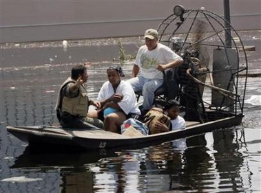 An operation to bus more than 20,000 refugees to the Houston Astrodome was suspended temporarily when shots were fired in New Orleans at helicopters being used in the evacuation, a local government spokeswoman in Houston said. The incident was part of the chaos that prompted New Orleans Mayor Ray Nagin to order police to drop rescue operations to fight the crime that gripped the besieged city. An angry Louisiana Gov. Kathleen Blanco told reporters: "We will do what it takes to bring law and order to our area." "I'm just furious. It's intolerable," she said of the growing crime wave. As more National Guard and Army troops headed into the region to help with relief efforts, thousands of people waited hours or waded through floodwaters to catch rides out of New Orleans, one of the world's most famous tourist destinations and the birthplace of jazz. Storm survivors sheltered in the Superdome football stadium scrambled to get out of the city, clambering onto 300 buses that shipped them 350 miles west to the Astrodome in Houston. The first of more than 20,000 people began arriving early Thursday at the stadium, where Red Cross workers set out thousands of cots and "comfort kits" that included various toiletries and a meal. But the operation was put on hold when shots were fired at Chinook military helicopters being used to transport the evacuees. "We were told they are shooting at Chinook helicopters and the operation has been put on hold until daylight," said Gloria Roemer, spokeswoman for Harris County Judge Robert Eckels. WIDESPREAD LOOTING Elsewhere in New Orleans, gunshots repeatedly rang out and fires flared as looters broke into stores, houses, hospitals and office buildings -- some in search of food, others looking for anything of value. They broke windows, tore down security gates and knocked down doors, then hauled away what they could carry or cart. Similar scenes were playing out in Mississippi where looters freely ransacked stores in Biloxi and Gulfport, both shattered by the storm that slammed into the U.S. Gulf Coast on Monday with 140 mile per hour (225 kph) winds and a 30-foot (9-meter) storm surge. Hundreds of people are believed to have died in what officials say will be one of the worst natural disasters in U.S. history. Nagin, the New Orleans mayor, estimated it would be 12 to 16 weeks before residents of the city could return. A million people fled the New Orleans area before Katrina arrived. But former Mayor Sidney Barthelemy estimated 80,000 had been trapped in the city. Amid the gloom was good news that floodwaters had started to drop in New Orleans, which is mostly below sea level and was inundated by water from Lake Pontchartrain after levees broke. "Water is now flowing slowly out of New Orleans," the U.S. Army Corps of Engineers said in a statement. It said it would it would open holes in parts of the city's levee system to let water drain out while at the same time attempting to fix several large breaches torn out by Katrina's storm surge. Corps officials estimated it could take a month to get the water out. Some people left homeless in Mississippi and Louisiana were frustrated with relief efforts. "Many people didn't have the financial means to get out," said Alan LeBreton, 41, an apartment superintendent who lived on Biloxi, Mississippi's seaside road, now in ruins. "That's a crime and people are angry about it." The Biloxi Sun Herald newspaper said in an editorial emergency supplies "simply are not getting here fast enough" and asked "why hasn't every able-bodied member of the armed forces in South Mississippi been pressed into service?" President Bush flew over stricken areas on his return to Washington from his Texas vacation and said, "We are dealing with one of the worst natural disasters in our nation's history." "This recovery will take a long time. This recovery will take years," Bush said. His administration declared a public health emergency amid concern about outbreaks of disease and began working with Congress on emergency legislation to assist recovery efforts from the disaster that some officials said rivaled the September 11, 2001, attacks. Bush warned against price-gouging of gasoline in the aftermath of Katrina and condemned the looting. "I think there ought to be zero tolerance of people breaking the law during an emergency such as this, whether it be looting, or price-gouging at the gasoline pump or taking advantage of charitable giving, or insurance fraud," Bush said in an interview on ABC's "Good Morning America." The storm was having a national impact as gasoline prices soared. The hurricane cut a swath through a region responsible for about a quarter of the nation's oil and gas output. The administration said it would release oil from the nation's strategic reserves to offset losses in the Gulf of Mexico, where the storm had shut down production. The U.S. Coast Guard reported at least 20 oil rigs or platforms missing in the Gulf of Mexico, either sunk or adrift, while officials estimated 95 percent of regional oil and natural gas production and eight refineries along the coast remained shut down. Several crude pipelines on the Gulf Coast remained out of service due to power outages, damage and flooding.