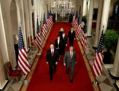 George W. Bush (bottom R) walks with new U.S. Supreme Court Justice Samuel