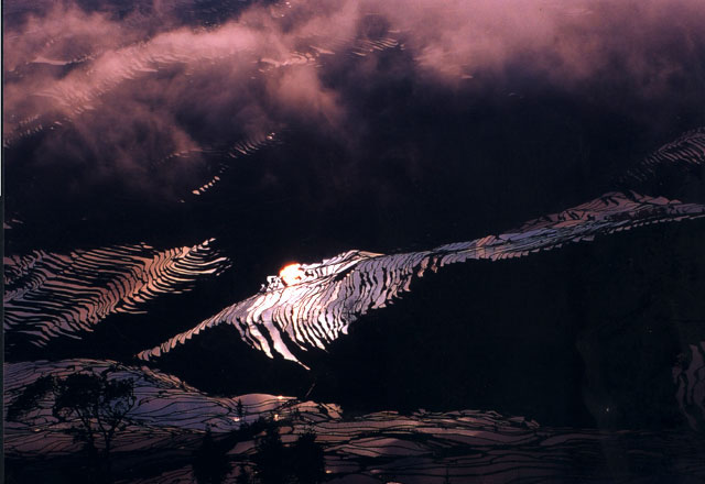 Thus, some ethnologists think that in relation to the climate, geology and ecology, no other society has ever presented a better choice than the Hani and their terrace. The four-elemental (forests, villages, terraces and rivers) structure is one of the quintessential ways of living for traditional agricultural civilizations, which is valued around the world. It is also a good research sample to promote the living conditions of modern human beings. The complete developmental history and well-preserved ethnic culture embodied in the Hani Terrace is also a good case for international ethnological research. The selection of the village site and the overall arrangement and unique construction of the terrace create an unparalleled aesthetic and have a special significance to village layout. The Hani Terrace, still providing the basic needs to local people today, demonstrates the extraordinary continuity of their cultural heritage. 'Magic mountain sculptors' According to the earliest written records, the Hani Terrace began to emerge in the Yuan Dynasty (1271-1368). At the end of the Song Dynasty (960-1279) and the beginning of the Yuan Dynasty, as a result of the chaos caused by war, Hani ancestors moved from the northern to the southern banks of the Honghe River to build terraces on the surrounding mountains that were generally 1,300-1,800 meters above sea level. This is the basic outline of modern terraces. The Hani have henceforth been passing on their traditional ways of life year after year, and generation after generation. In the Ming Dynasty, the Han brought advanced technology, which helped build the large-scale terrace landscape in the mountains about 700-1,800 meters above sea level. One emperor in the Ming Dynasty once called the Hani 'Magic Mountain Sculptors', a name that is still in use today.
