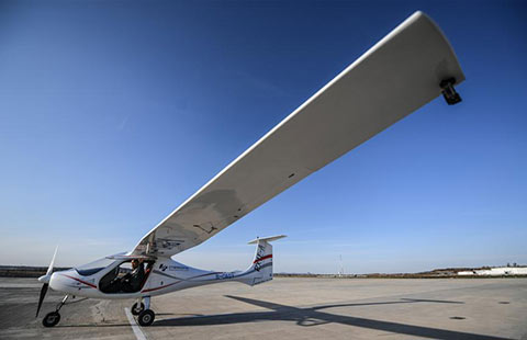 An advanced version of China's first electric plane made its maiden flight on Wednesday, extending the single flight time to two hours from around 45 minutes.