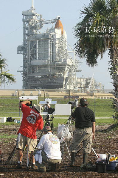 組圖:2006 年6月30 日,美國肯尼迪航天中心,攝影師正為“發現”號取景。(Getty圖片社)
