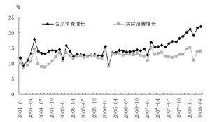 圖4 2007年以來名義消費與實際消費均增長較快