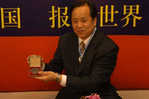 1984年,劉江永教授曾參加接待3000名日本青年訪華代表團。圖為劉江永教授向新華網網友展示當年的紀念章。新華網 蔡國華攝