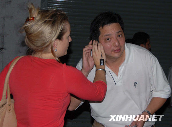 11月27日,印度孟買泰姬瑪哈酒店的住客被營救之后打電話報平安。新華社發