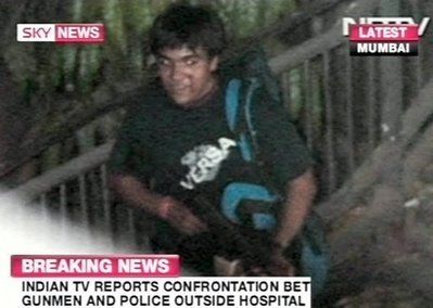 26日夜間的電視畫面截圖--孟買恐怖襲擊嫌疑人