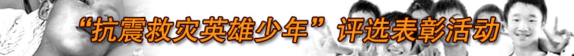 為大力弘揚災區少年兒童在抗震救災中所表現出的臨危不懼、勇于救人的高尚品質,中央文明辦、教育部、共青團中央、全國婦聯決定評選表彰一批“抗震救災英雄少年”。此項活動自6月6日開始后,廣大干部群眾積極關注、熱情參與,產生了熱烈的社會反響。 [詳細]