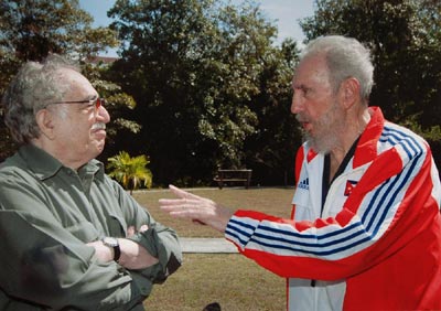 這張照片拍攝于2007年3月12日,卡斯特羅(圖右)在與哥倫比亞作家加西亞交談。