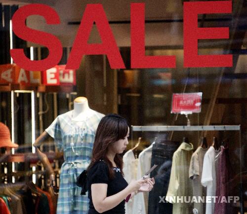 資料圖片:8月13日,在日本首都東京,一名顧客從打著降價廣告的服飾店前走過。日本內(nèi)閣府當(dāng)日公布的初步統(tǒng)計數(shù)據(jù)顯示,去除物價變動因素,今年第二季度日本國內(nèi)生產(chǎn)總值比第一季度下降了0.6%,按年率計算下降了2.4%。這是日本經(jīng)濟(jì)去年第二季度以來再次出現(xiàn)負(fù)增長。新華社/法新