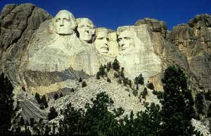 and Theodore Roosevelt carved into a granite bluff. The massive sculpture was