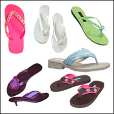鞋類 在大腳趾處用一根帶子固定在腳上的無背的、通常用泡沫橡膠制成的涼鞋 flip-flop