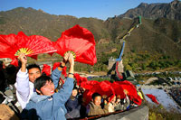 Beijing volunteers launch smile campaign [ 2006-10-30 10:17 ] 10月29日,奧運志愿“微笑圈”測試版發布儀式暨“我們在長城傳遞微笑”大型主題宣傳活動在昌平居庸關長城隆重舉行。全長4.1公里的燕京八景之一——居庸關長城重又煥發出青春的光彩,被奧運五環的五種顏色裝點成了一條流動的五彩緞帶。5300名大學生志愿者在這里向世界傳遞出了中國志愿者的友好微笑。