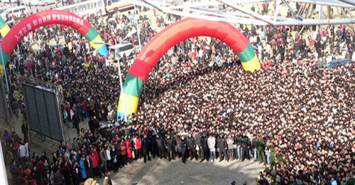 畢業生洽談會上午7點開始,然而天不亮,會展館廣場上就已聚集了近萬名學子。為防止因擁堵發生踩踏等意外,根據往年經驗,煙臺市市區兩級公安部門和武警支隊提前抽調了240名民警和武警現場維護秩序。距7點開場還有半小時,會展館廣場上已聚集起逾2萬人,大學生們都同樣一個動作:雙手緊攥應聘簡歷,眼睛直盯著會展館入口,很少說話。7點,會展館入口開放,館內各攤位前很快便圍滿了應聘的學生。