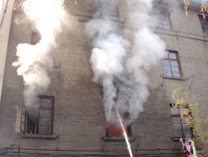 火災發生10分鐘后,雙榆樹消防中隊趕到現場滅火。他們到時,火勢正處于猛烈燃燒階段,3個窗口冒出滾滾濃煙,明火從發生爆炸的249宿舍躥出,燒毀了對面宿舍的大門。