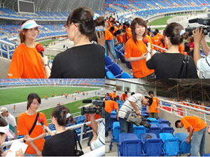 天津奧林匹克中心,雄偉而壯觀的“水滴”體育館在陽光的照射下,熠熠生輝。它是天津人民的驕傲,也承載著無數華夏兒女對08奧運的熱盼之情。身著女足世界杯標識和代表天津賽區主色調橙色T恤衫的天外學子第一次走進“水滴”內部,看到嶄新的場館、整齊的座椅、嫩綠色的草坪,立刻感受到了濃濃的奧運氣息,天外學子既是志愿義務勞動者又是第一批進入奧林匹克中心的幸運觀眾。同學們拿出準備好的抹布、臉盆,認真地擦拭起每一張座椅,為“水滴”清整衛生,用辛勤的雙手扮靚“水滴”,將愛國之情、民族自豪融入到了勞動中,新落成的天津奧體中心體育場成為一片橙色的海洋。同學們積極熱情的服務場面,吸引了多家媒體的關注,天津電視臺、《天津日報》、《每日新報》、《城市快報》的記者紛紛對我校志愿者進行采訪。同學們表示,作為一名大學生應該主動走在志愿服務的前列,用我們的實際行動回報祖國、回報社會。經過了1個多小時的義務勞動,同學們順利完成了任務,市體育局相關領導對我校開展的志愿服務活動給予了高度贊揚。
