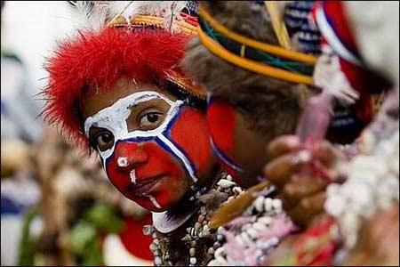 非洲兒童從很小的年齡起就可以參與臉部彩繪活動(dòng),兒童們?cè)谶M(jìn)行各種文藝表演時(shí)通常學(xué)成年人的樣子在臉上涂抹出色彩艷麗的彩繪圖案。