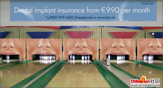 打掉你的牙 很難將保齡球與護牙廣告聯系在一起,但今天看到的這則廣告卻做得非常有意思,也讓人聯想到滿口的蛀牙。 123456789