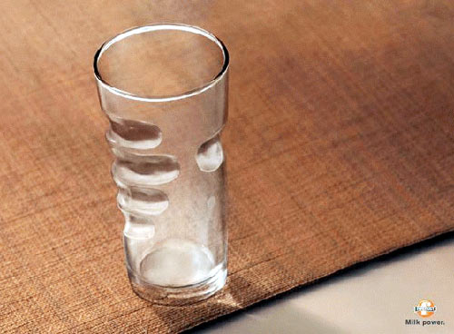 牛奶真牛!(milk power)玻璃原是裝著牛奶,越喝越有力,喝完后,不知不覺地留下手印。