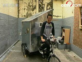 A Hong Kong designer has come up with a tricycle which doubles as a small home. It's designed to combat cramped and expensive living conditions in the Special Administrative Region.