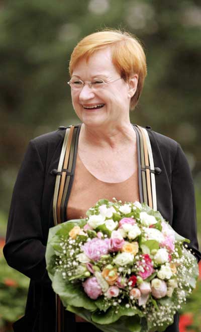 Finnish President Tarja Halonen meets Russian President Vladimir Putin at the Finnish presidential summer residence Kultaranta in Naantali, Finland, in this August 1, 2005 file photo. (Reuters)