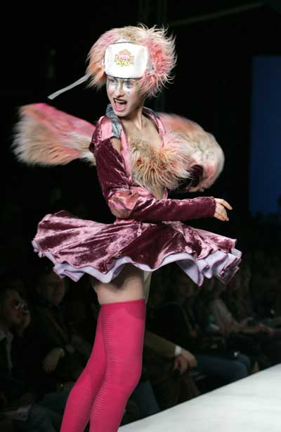 A model presents a creation by Two Gun Towers during Russian Fashion Week in Moscow April 4, 2006. (Reuters)
