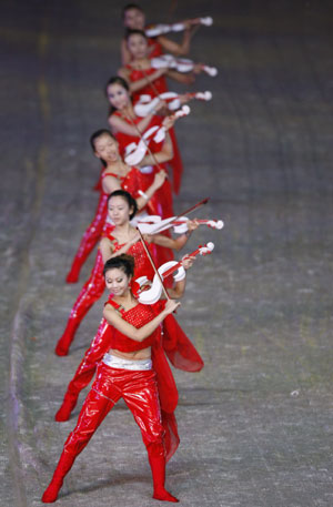 Performers take part in the opening ceremony for the 2007 FIFA Women's World Cup before the match between Germany and Argentina at the Hongkou Football Stadium in Shanghai, September 10, 2007. (Reuters)