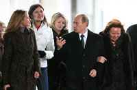 Russian President Vladimir Putin (2nd R) walks to vote at a polling station in Moscow, capital of Russia, Dec. 2, 2007. [Xinhua]