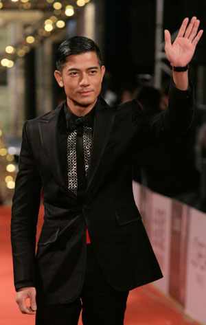 Hong Kong actor and singer Aaron Kwok waves as he arrives on the red carpet for the 44th Golden Horse Awards in Taipei December 8, 2007. (Agencies)