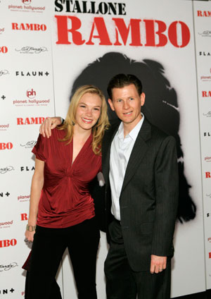 Cast member Jake La Botz and his wife, actress Abby Brammell, arrive for the movie premiere of "Rambo" at the Planet Hollywood Resort and Casino in Las Vegas, Nevada January 24, 2008. (Agencies)