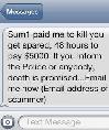 自本周一起,澳大利亞有數千人收到一條死亡威脅短信,稱如果不在48小時內支付5000澳元,就會性命不保。澳大利亞警方稱該短信可能是有組織犯罪團伙所為,并告誡人們收到此類短信后“不要回復,立即刪除,不要驚慌”。