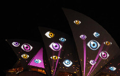 The sails of the Sydney Opera House are lit with artwork "La Macula" by French collective Superbien during the Vivid festival in central Sydney May 27, 2011. Vivid Sydney, a festival of light, music and ideas, will run until June 13.