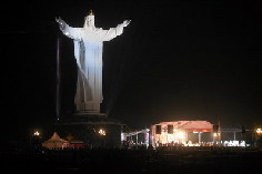 People take part in the celebrations of the unveiling of the statue of Jesus in Swiebodzin, western Poland Nov 21, 2010.