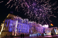 Former German Chancellor Helmut Kohl is seen on a huge screen at the German Bundestag during celebrations marking the country's 20th anniversary of reunification in Berlin October 3, 2010.