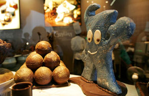 A chocolate replica of the Expo mascot Haibao is displayed at Belgium-EU Pavilion of the Expo Park in Shanghai, Aug 21, 2010.