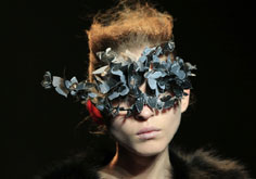 A model presents a creation by designers Junko Shimada and Francois Agostini as part of their Fall/Winter 2010/11 women's ready-to-wear fashion collection for Japanese fashion house Junko Shimada during Paris Fashion Week March 9, 2010.