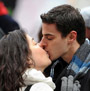 Couples practice kissing for New Year's Eve celebration
