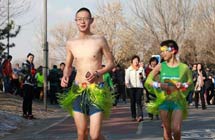 2月28日,市民在北京奧林匹克森林公園參加“光豬跑”。