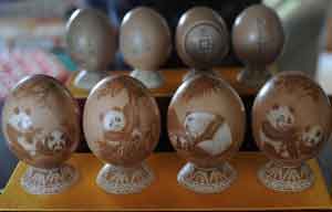Photo taken on June 19, 2013 shows egg carving handicrafts made by Pu Derong, a man from Dongzhuangtou village in Zhuozhou city, North China's Hebei province.
