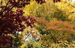 Autumn scenery in Srinagar, Kashmir: with the arrival of autumn, trees are changing colors while the days become shorter.