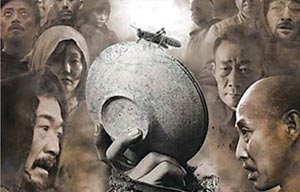 Mo Yan's 90-year-old father Guan Yifan still farms (left). Mo Yan's elder brother Guan Moxin shows a farm implement they used in childhood (middle). Nie Peng, an inheritor of Gaomi's clay sculpting tradition, hopes Mo's win will draw global attention to local folk arts. Photos by Ju Chuanjiang and Zhang Zixuan / China Daily |